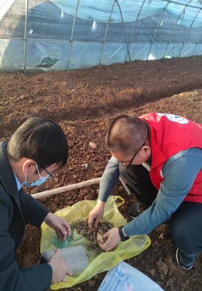 在西峡县丹水镇袁庄村,菌类产业科技特派团一行6人实地深入羊肚菌种植基地查看了菇棚的管理和菌种生长情况,为种植农户带去了最新改良的羊肚菌品种,现场对菇棚中的温度、湿度和土壤的酸碱度进行现场检测,将随团带去的羊肚菌播撒在菌畦中。特派团副团长李慧星等人就冬季羊肚菌的种植管理与现场人员进行了交流。