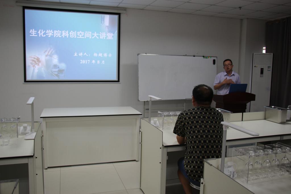 8月30日上午,生化学院在汇森楼二楼品酒实验室举办科创空间大讲堂第三次学术报告会。报告由上海交通大学杨超博士主讲,生化学院李入林教授主持,生化学院领导班子、教师及学生代表近50人参加报告会。