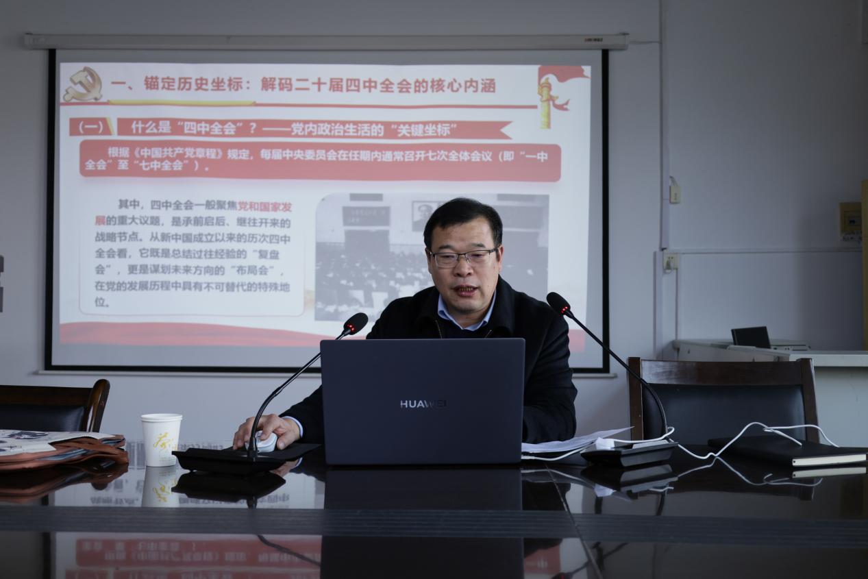 黄金书从党的二十届四中全会核心内涵、“十五五”规划深层逻辑、“十四五”成就与实践、主流媒体核心解读、擘画的未来蓝图等五个方面进行了生动宣讲。他指出,全会是在我国迈向第二个百年奋斗目标的关键时期召开的重要会议,审议通过的"十五五"规划建议是指导未来五年发展的纲领性文件。学习党的二十届四中全会精神要与学校和学院发展实际紧密结合。生化学院是我校最早院系之一,国医学院作为我校特色学院,都肩负着“教育强校 学院何为”的重要使命和责任,要牢牢把握“十五五”发展机遇,将全会精神转化为推动学科建设、科学研究和人才培养的具体行动,进一步凝练学科方向,着力提升创新能力和解决关键技术问题的本领。同时,不断优化育人体系,深化教育教学改革实践,努力培养具有家国情怀、创新精神和实践能力的高素质应用型人才,为学校申硕攻坚和高质量发展贡献更多“学院力量”。