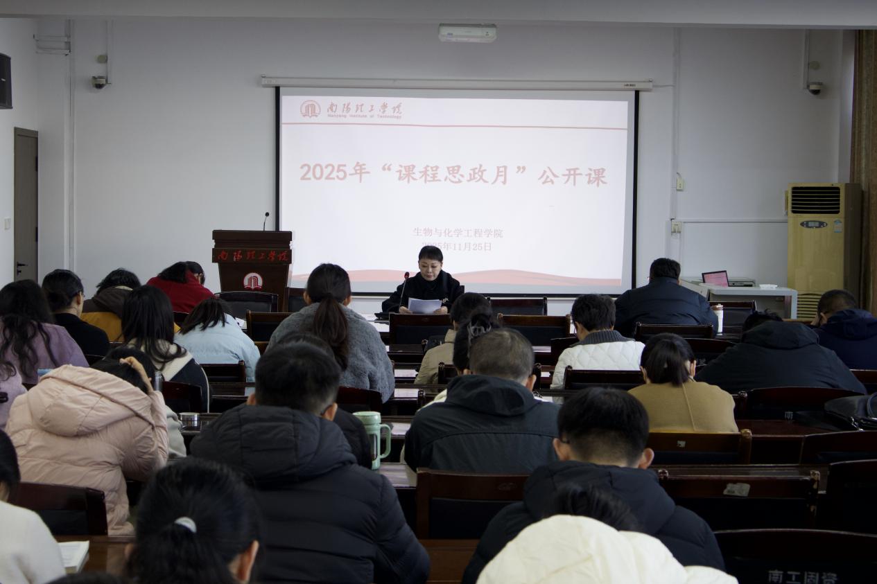 本网讯(学生通讯员/陈佳镓 郑可佳)11月25日,生物与化学工程学院于9225会议室举办“课程思政月”系列公开课活动,生化学院党委书记李冉、副院长李慧星出席,全体教职工参加。